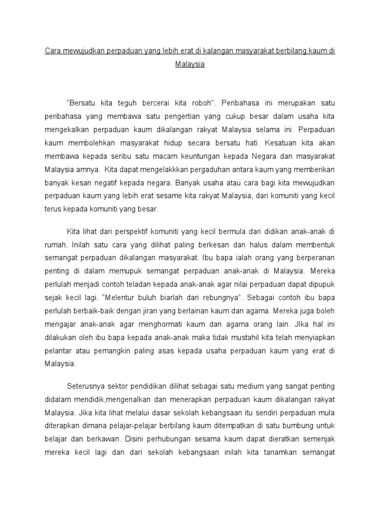 Related : Karangan Perpaduan Kaum Spm - Sekiranya perkara ini dapat dipraktikkan nescaya masyarakat malaysia akan mampu menghadapi..