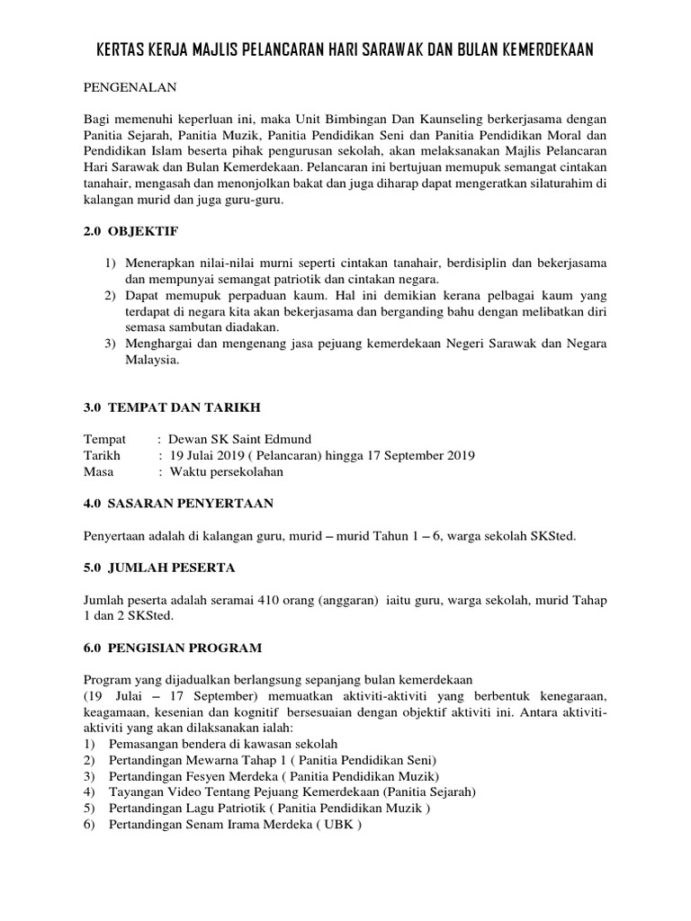 Kertas Kerja Bulan Kemerdekaan 2019 : Kertas Kerja Bulan Kemerdekaan 2019 : Antara kertas kerja yang terdapat dalam koleksi ini seperti, kertas kerja kem bestari solat, kem cemerlang jawi, bulan kemerdekaan, hari keusahawanan, kertas kerja minggu bahasa dan banyak lagi.. 100 idea hiasan kelas sempena kemerdekaan cikguhailmi. Bulan jabatan kemanusiaan pada tahun ini dijalankan pada bulan ogos yang juga merupakan bulan kemerdekaan. Secara garis besar dikelompokan dalam. Tahun ni saya dapat job baru, first time dilantik sebagai penyelaras sambutan bulan kemerdekaan. Kertas kerja inventaris yang selanjutnya disebut kki adalah instrumen untuk melakukan kegiatan sensur barang milik daerah bmd.